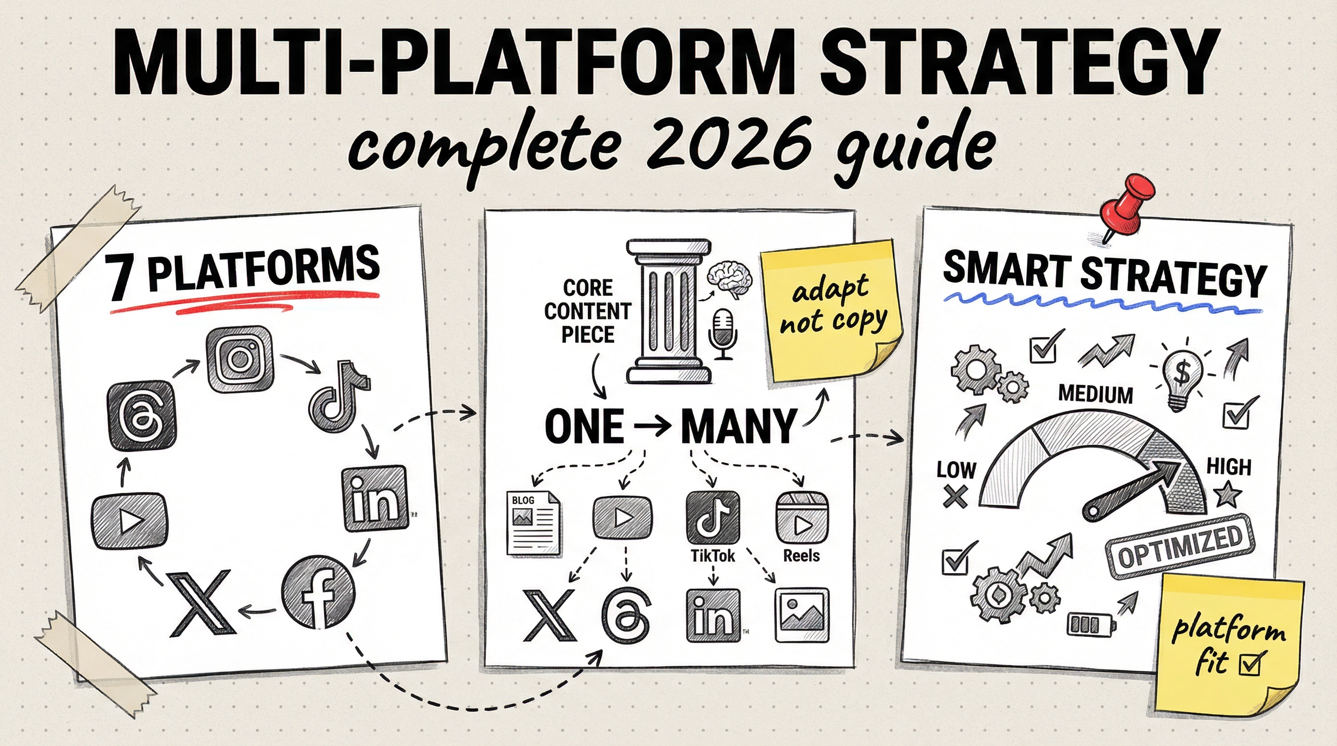 - Create posts for Instagram, TikTok, and X in the same session